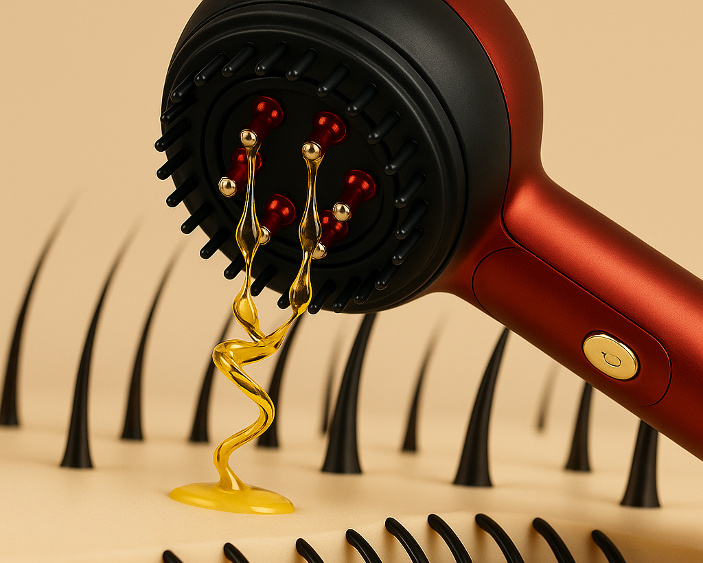 Diffusera dina favoritoljor eller serum direkt till hårrötterna tack vare den integrerade behållaren och appliceringsmikrokulorna.