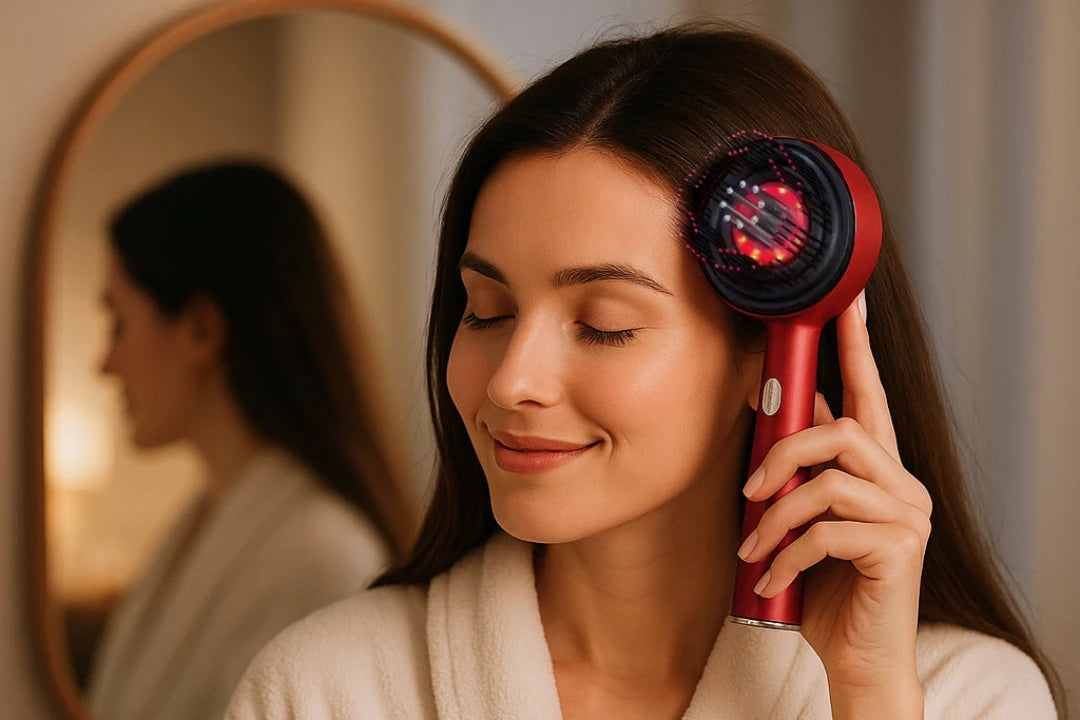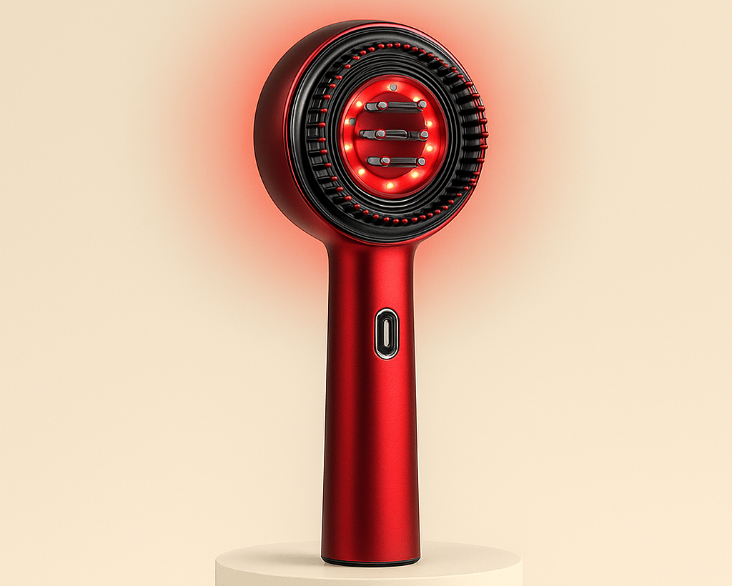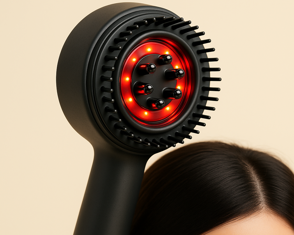 630nm-tekniken stimulerar hårsäckar, förbättrar densiteten och stärker hårrötterna – samtidigt som den ger en ultraavslappnande massage.